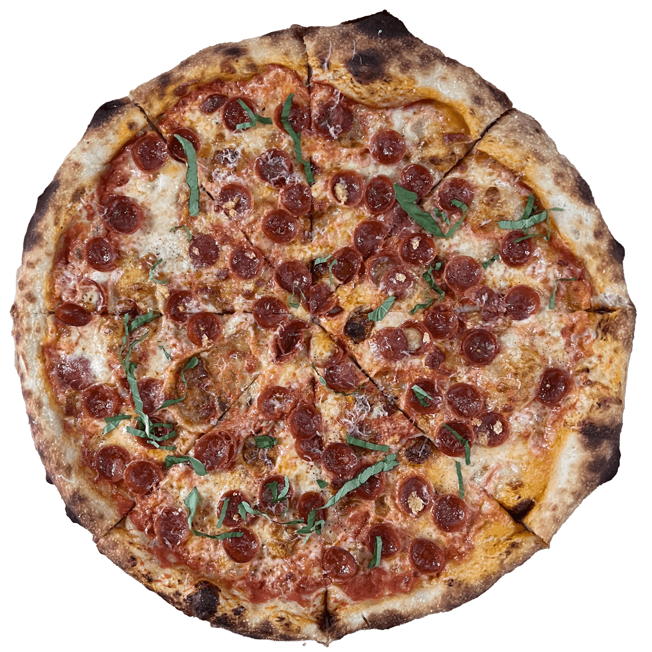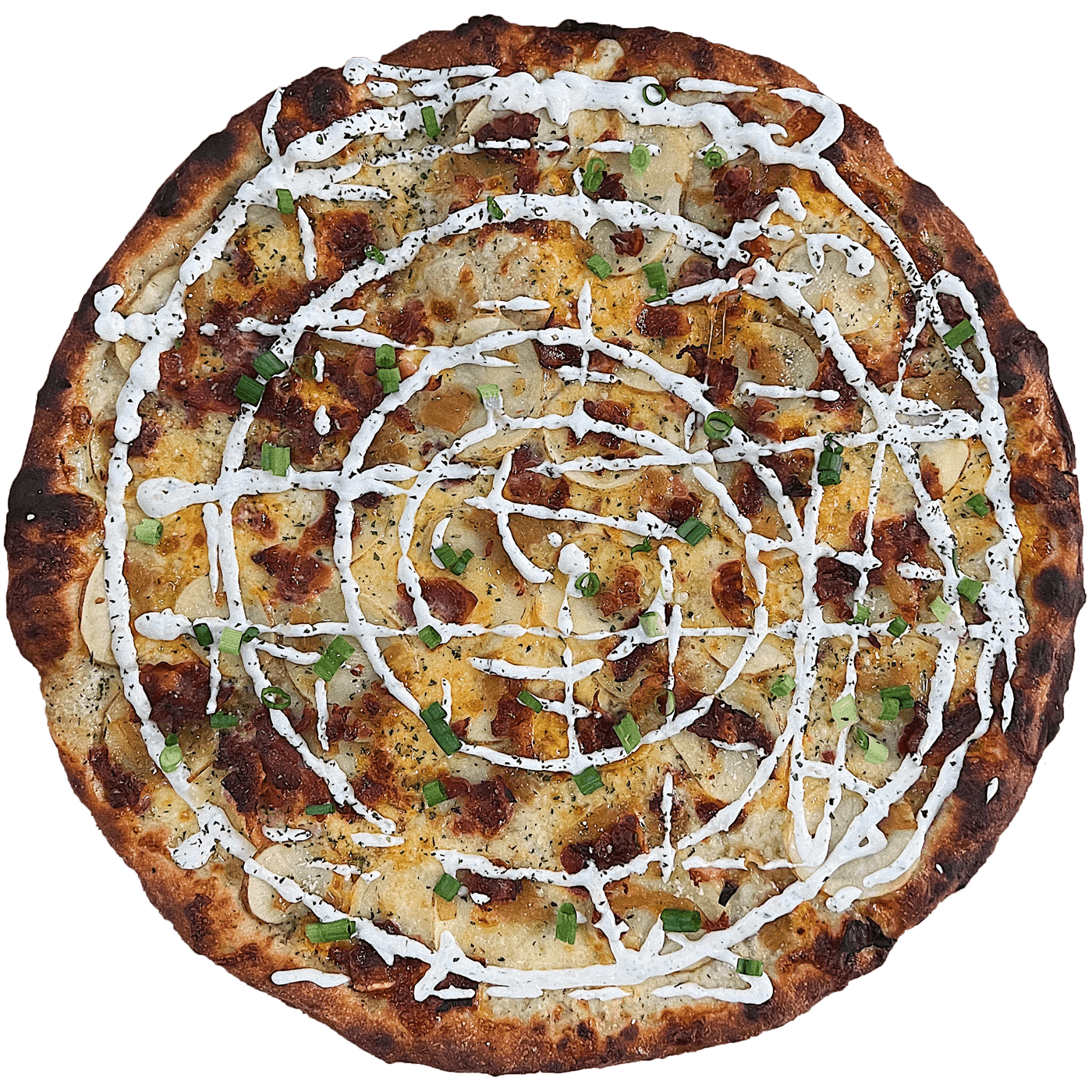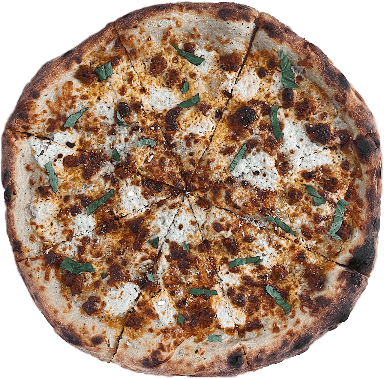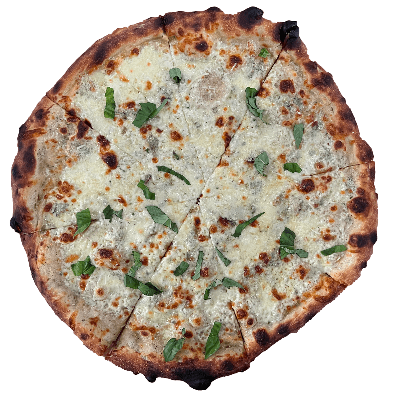 12”, sesame seed crust, garlic confit parm base, mozz & cheddar cheese, fresh crushed garlic, sadboy sprinkles. finished with parm, parsley, and white truffle oil.