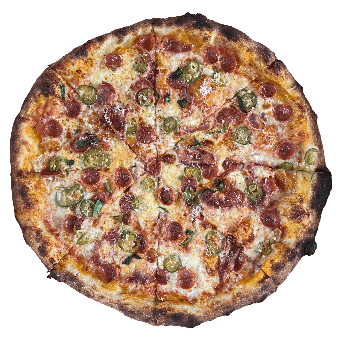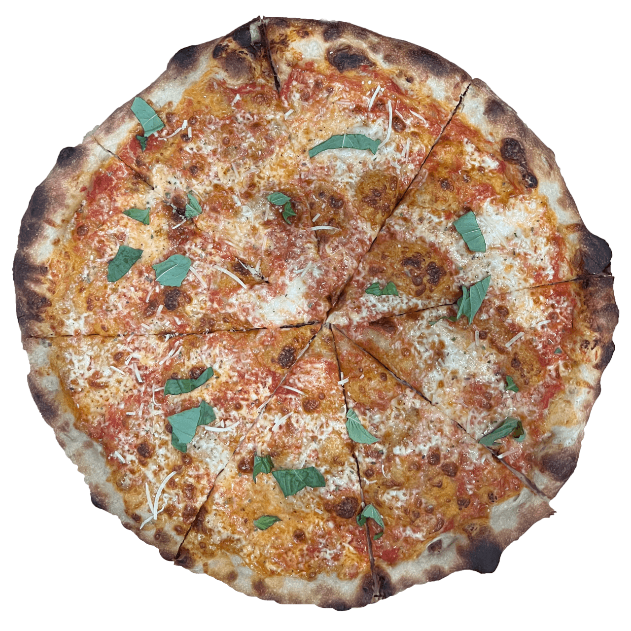 most pizzas finished with grana padano and fresh basil